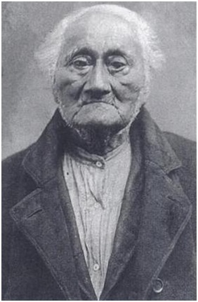 Corntassel settled on Cherokee Nation land just west of Westville where the community came to be known as Green.  It became “Old Green” when another community, also called Green, was established in Delaware County.  From Highway 51 west of Westville, you can take Ross Swimmer Road toward Old Green.  On the way, you will come upon a small cemetery with a sign that reads “Corntassel 1891.”    There you will find the grave of Corntassel and his family members.  He was believed to be 117 years old at the time of his death.”  His photo, below is from the same source.