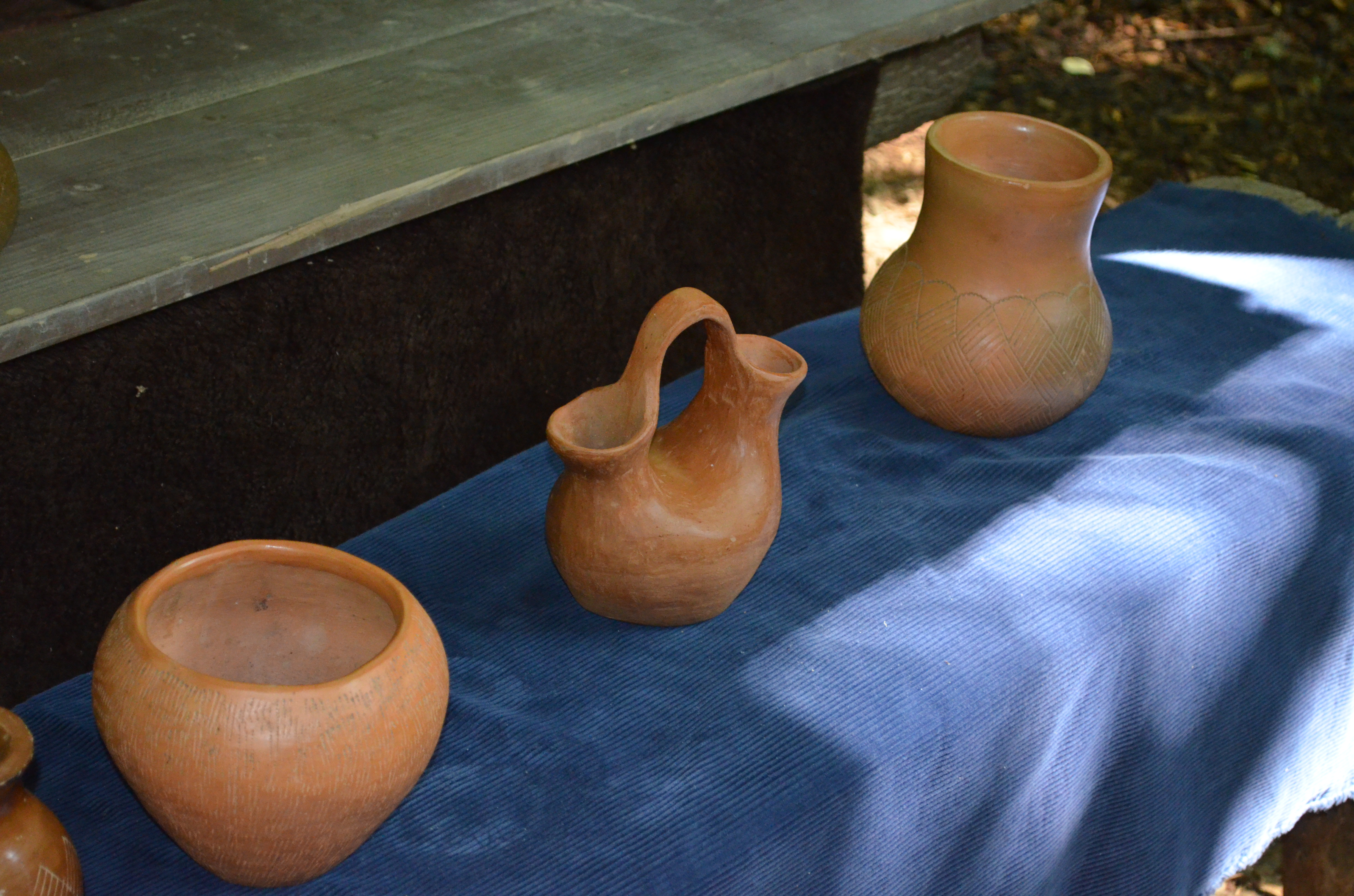 Pottery of course was a village staple of all Native people.  Pots were used for everything from carrying water to cooking to being decorative and celebratory, like with the marriage vessel below.  The bride and groom would each drink from opposite sides, then the pot would be broken.