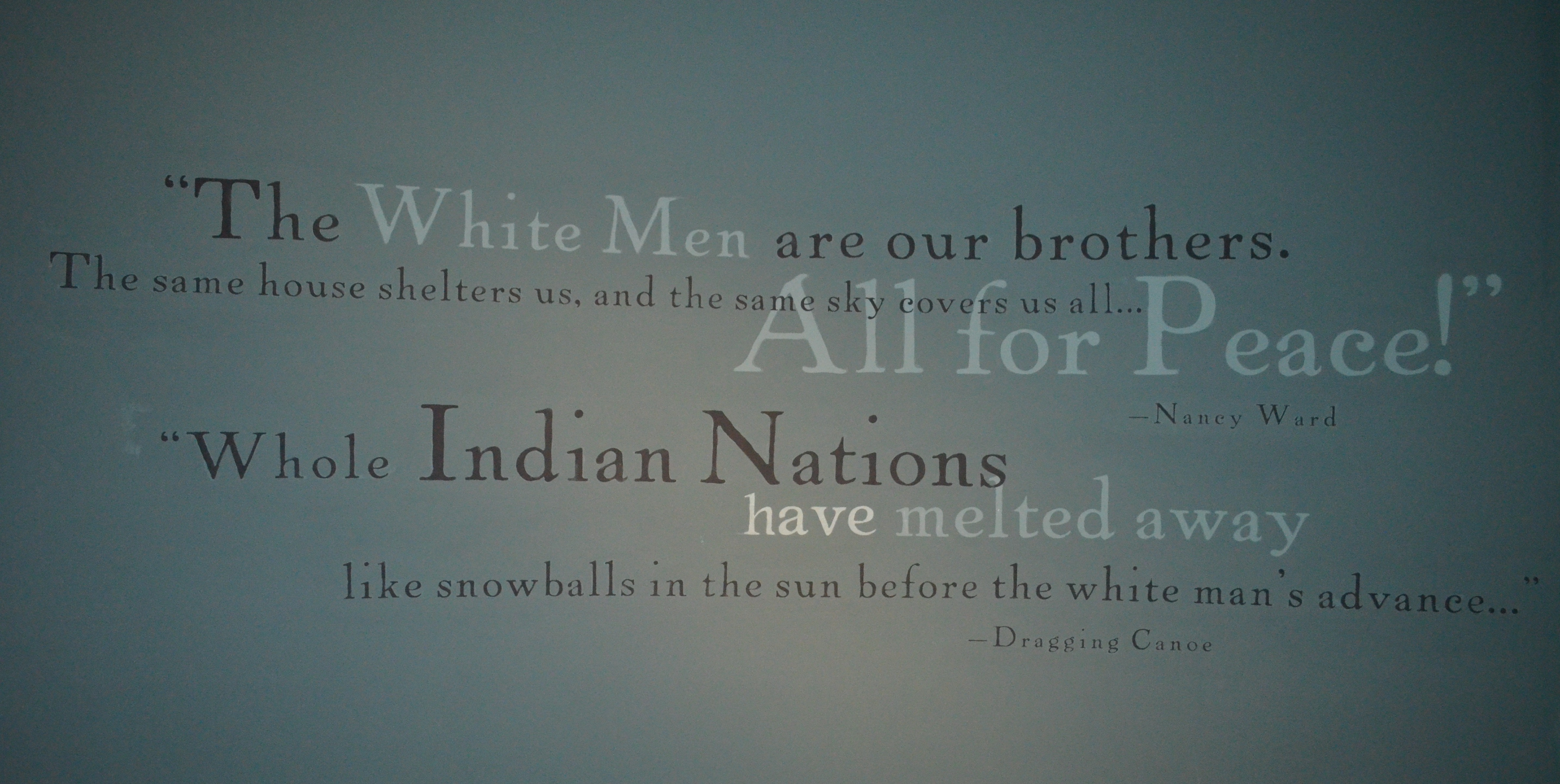 I spent quite a bit of time there visiting.  From there I went to the museum, which was OK, but not remarkable, especially not after the village.  The thing I found moving in the museum was a lifesize mural of the Trail of Tears.  The museum in Talequah in Oklahoma has something similar as well.  The individual and tribal pain of this genocidal action, not only for the Cherokee, but all of the organized tribes that were removed were almost unfathomable, especially after they trusted the whites.  Would the betrayal ever stop?