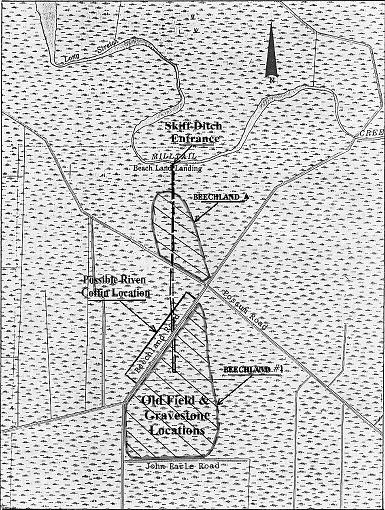 Phil McMullan in his paper “A Search for the Lost Colony in Beechland” records the various oral histories that he has collected from various sources. His expertise garnered from his time spent with Prulean Farms and in particular his project with the U.S Corps of Engineers preparing an Environment Impact Statement for their proposed 22,000 acre farm on theDareCountymainland provides him with valuable insight. Many important historical and archaeological finds were discovered during that project and Phil collected various supporting information. An area known as Beechland that Phil described and mapped has been confirmed by archaeological survey and the local residents to be the location of a high piece of timbered land that at one time supported a number of families.