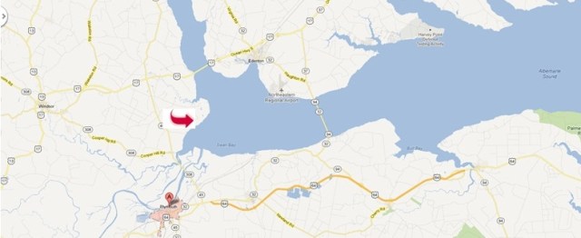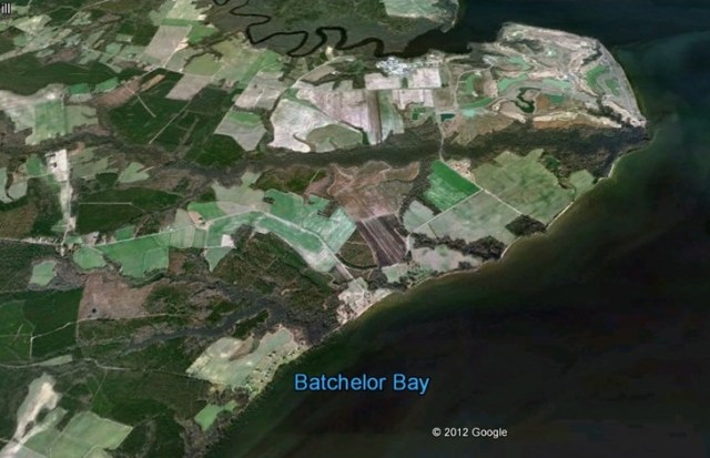 On the Google Earth map below, you can see Bachelor Bay at the bottom and you can follow Sutton Road to the Scotch Hall Preserve.
