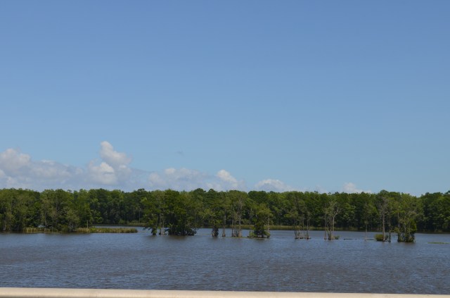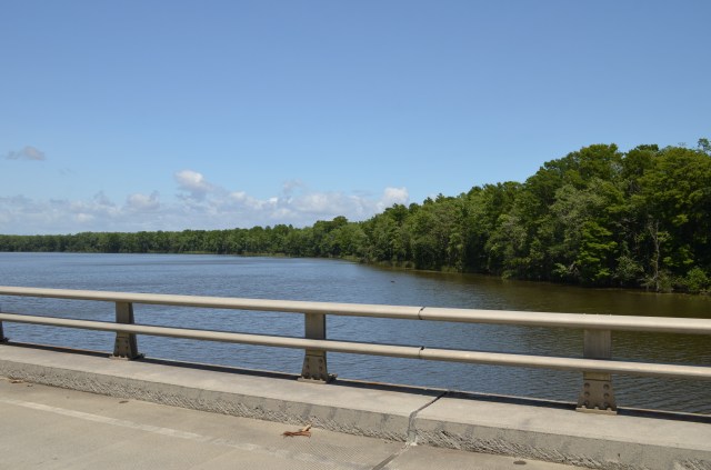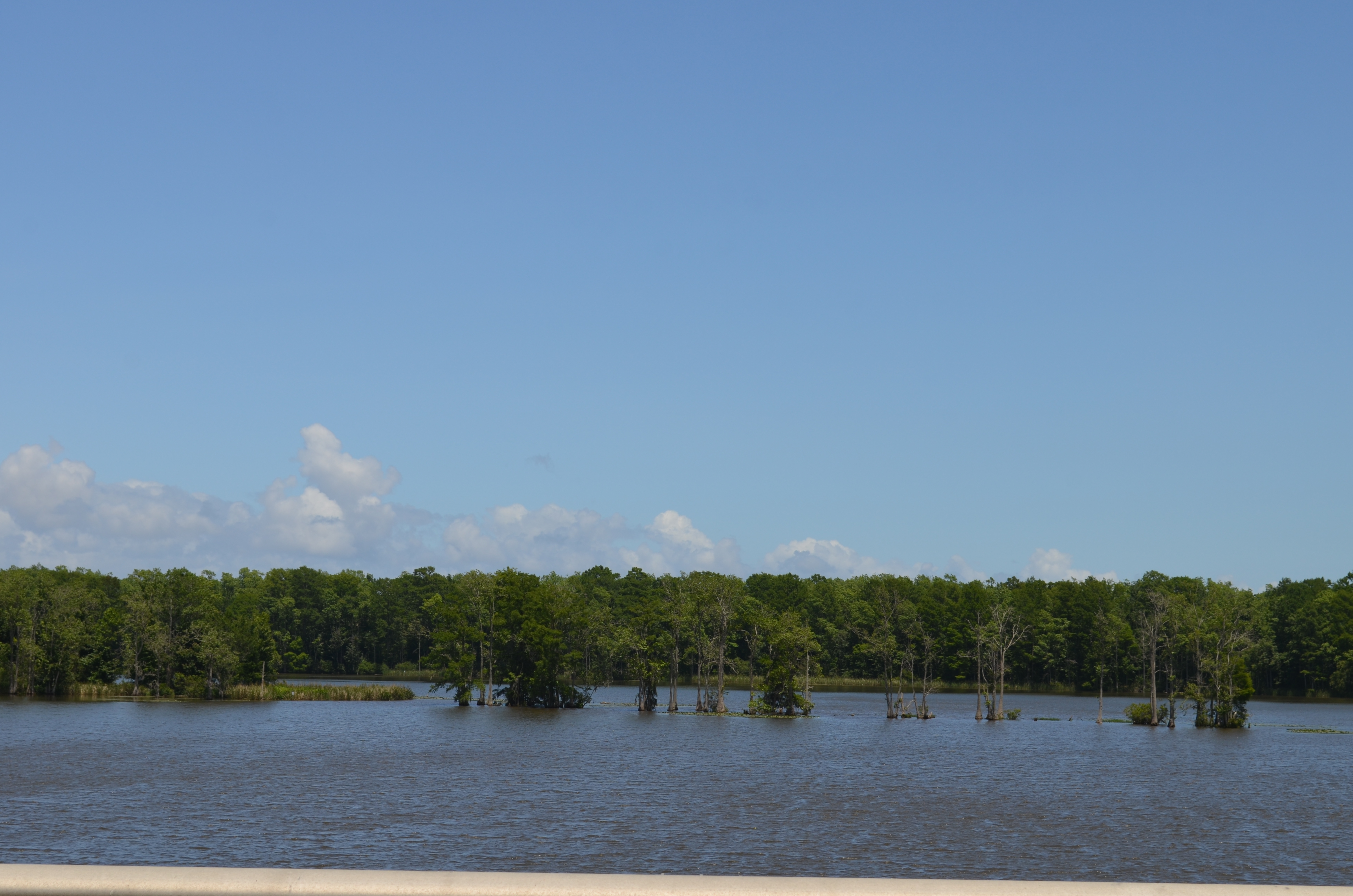 Crossing the rivers, I was surprised how undeveloped this region is, and I do mean totally undeveloped in most places. The next two photos were crossing the bridges of the three rivers. They all look exactly the same, tree lines and if you didn’t see the bridge, you would never be able to tell that it wasn’t 1585. This must have been exactly what the military expedition of colonists saw when they explored here in 1585-1586. The water is brackish here, not totally fresh water, nor totally saltwater. The key to survival in this location would have been fresh water, and of course, the ability to defend yourself, or being friendly with a tribe that would help. The Indians would probably have been all too willing to assist in trade for guns. They understood a competitive edge.