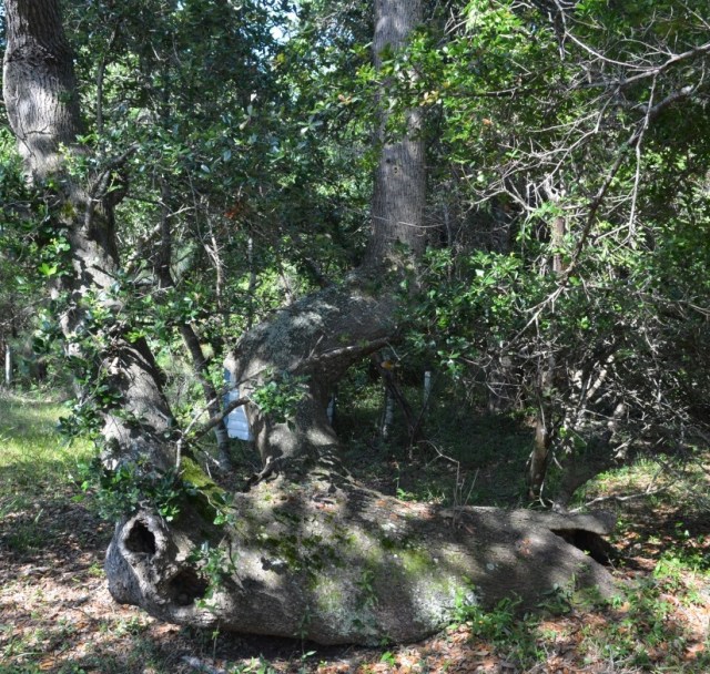 This surely looks like a forked live oak stump, and it’s old, quite old. Could this be the actual boundary marker tree in question? You can see the fork quite well in the next photo. What tales and secrets this tree could tell if it could only talk.