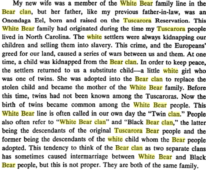 I began searching for something a little more definitive, but I found nothing in my resources. I often refer to the Elias Johnson book, “Legends, Traditions and Laws of the Iroquois, And History of the Tuscarora Indians,” but on this topic, trusty Elias was silent.