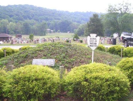 As I was looking for something entirely unrelated, I stumbled across this picture of the Native burial mound in the Gnadenhutten-Clay Union Cemetery in Gnadenhutten, Tuscarawas County, Ohio.