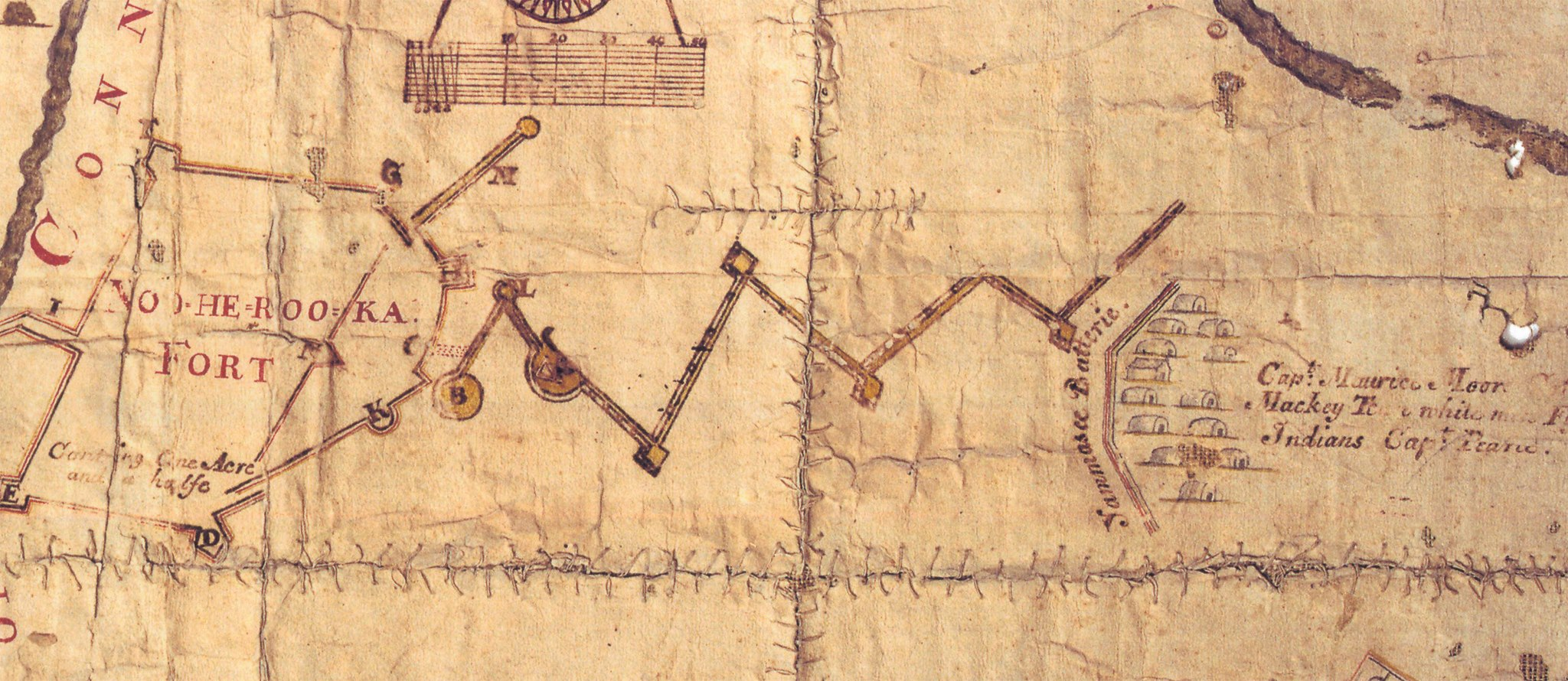 On the map above, Moore’s battle map, you can clearly see Captain Moore’s encampment to the right, and the Fort to the left.