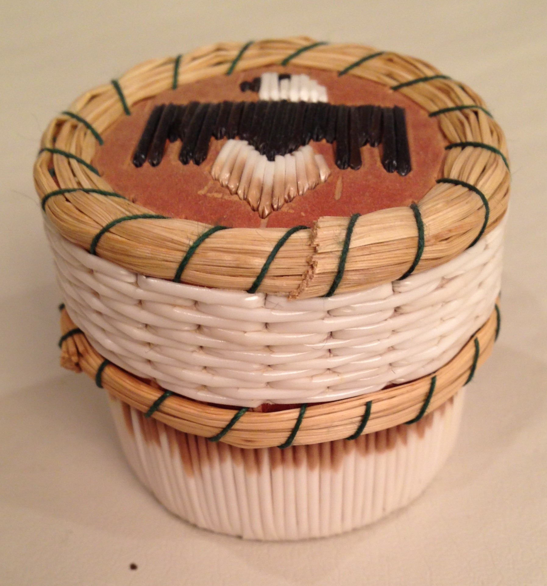Today, most quillwork is decorative and done on a birchbark base. This small birchbark, sweetgrass and quillwork eagle box from my own collection illustrates the type of quillwork most often seen today.