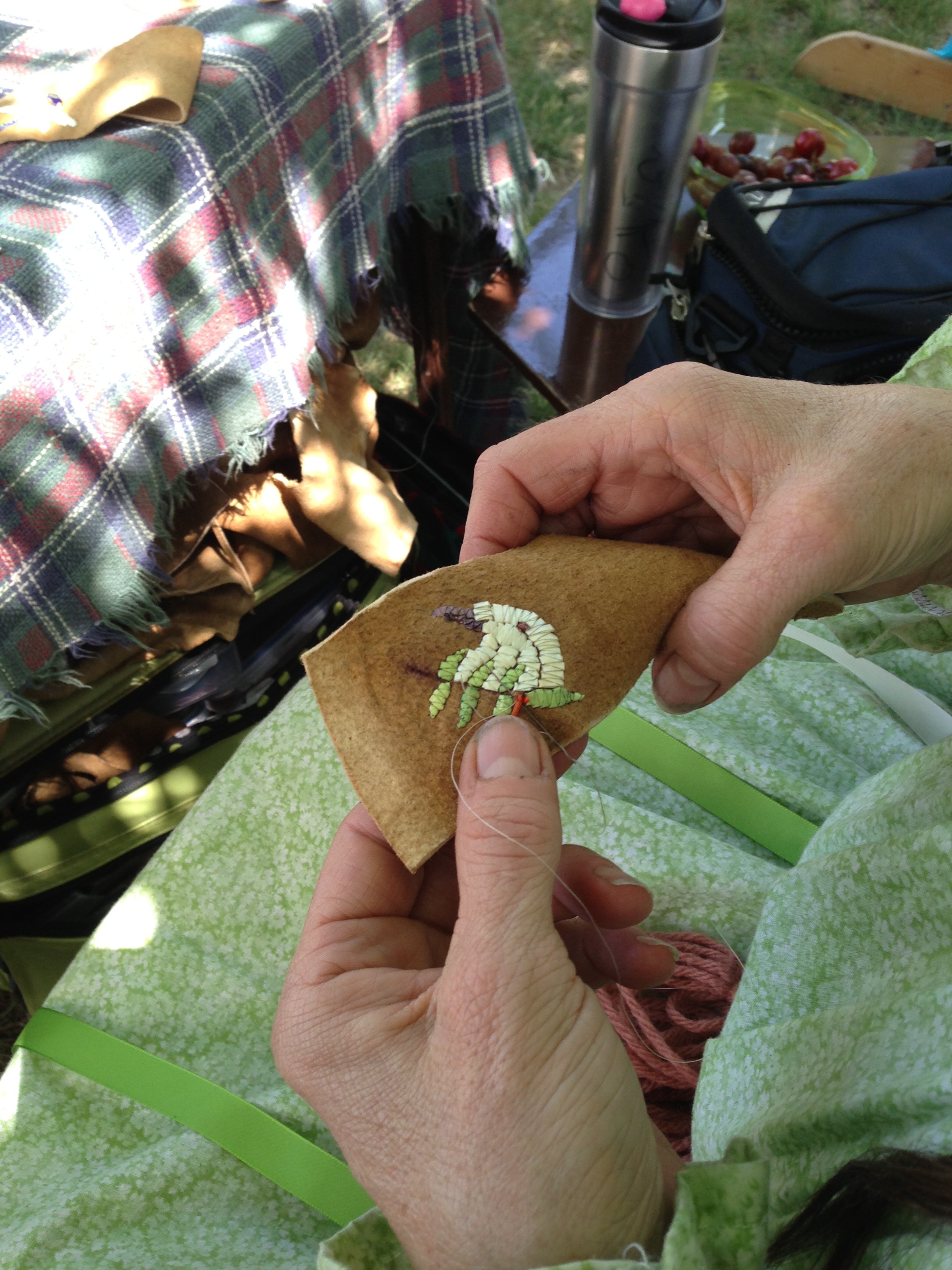 I asked Bonita how she began, and she told me that she found a dead porcupine and plucked it’s quills. As with many skills, she learned the basics from elders, but then, she was on her own. As you can see, she has developed her own artistic voice.