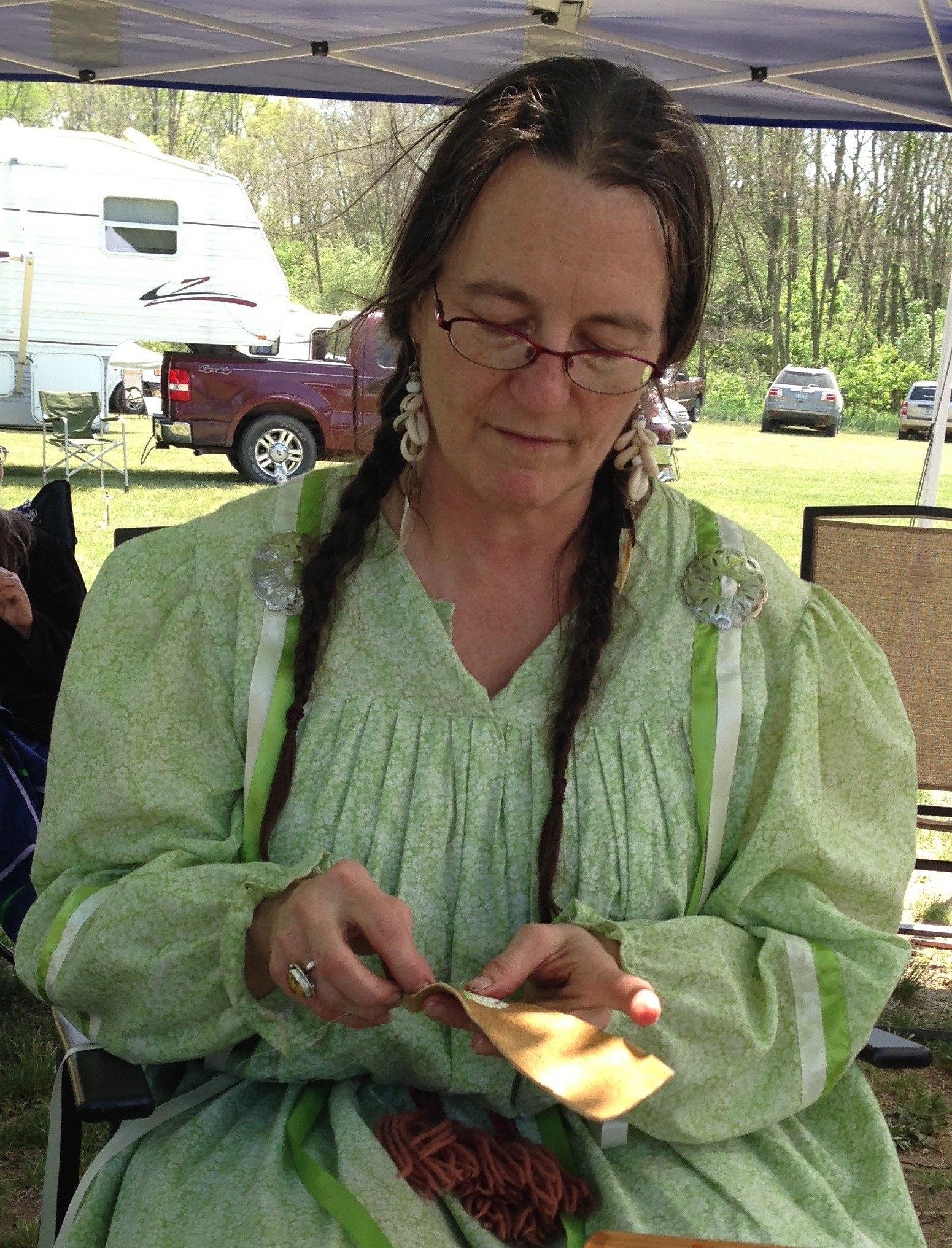 Meet Abby Bent. Abby nearly gave me a heart attack. She was quite interested in what I was doing and was looking over my shoulder at her “mother,” Bonita. Abby goes to powwows and reenactments with Bonita. Why, Abby Bent even has her own facebook page, friend and followers.