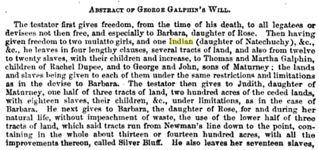 So, yes, indeed, there was much more to the story and now, the story makes sense. George Galphin left his estate to his children, some of which either were or had been his slaves, or there was some legal question thereof and he made sure to remove any question. Other children were highly placed within the Creek Nation.
