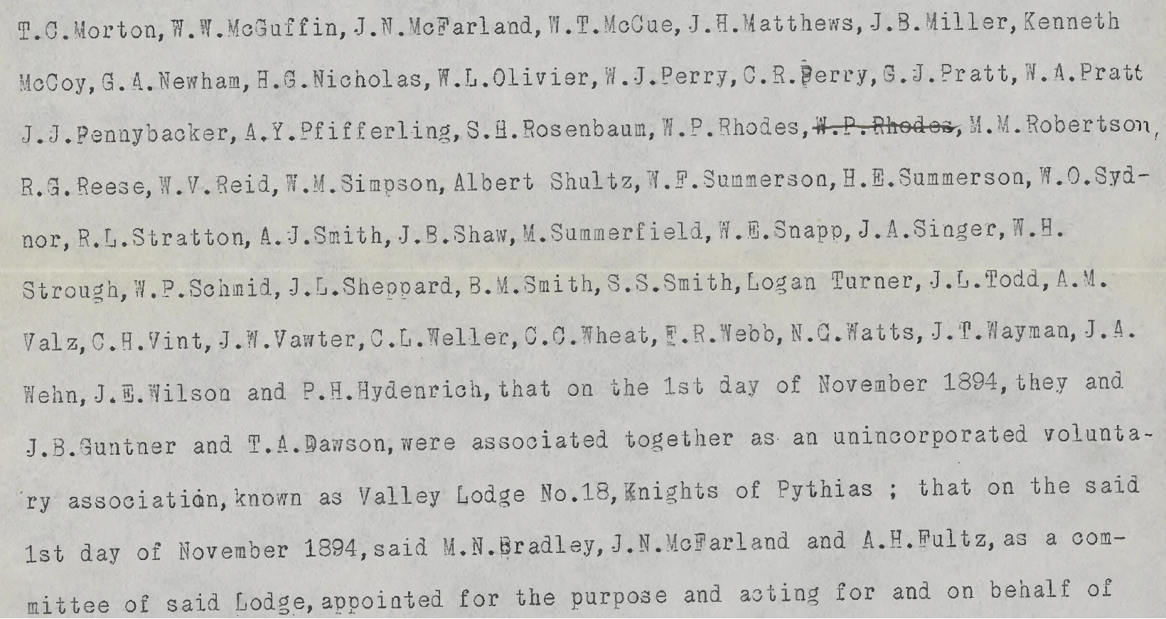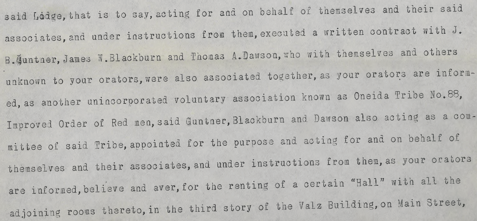 On November 1, 1894, the suit states that a group of men formed an unincorporated voluntary association called the Oneida Tribe #88, who purchased, then leased space in a building to other groups, one of which was suing them.